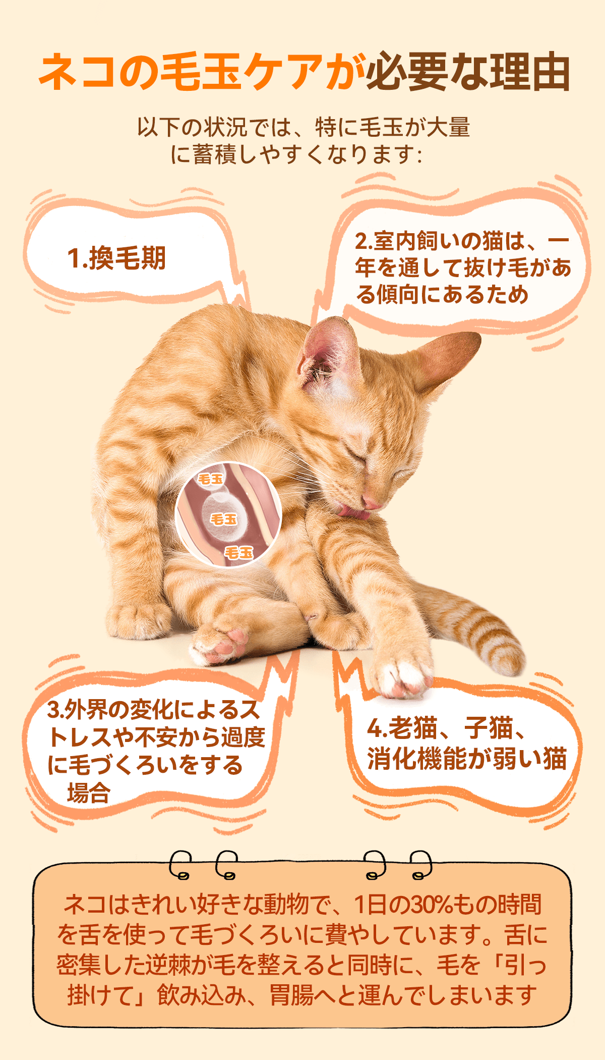愛猫の毛玉ストレスを優しく解消!毎日のおやつ感覚で、快適なグルーミングライフを。