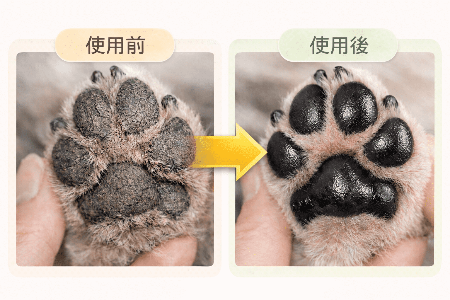 肉球が乾燥・ひび割れしやすい、フローリングで滑りやすい、散歩後のダメージケアをしたい、舐めても安心なケア用品を探している