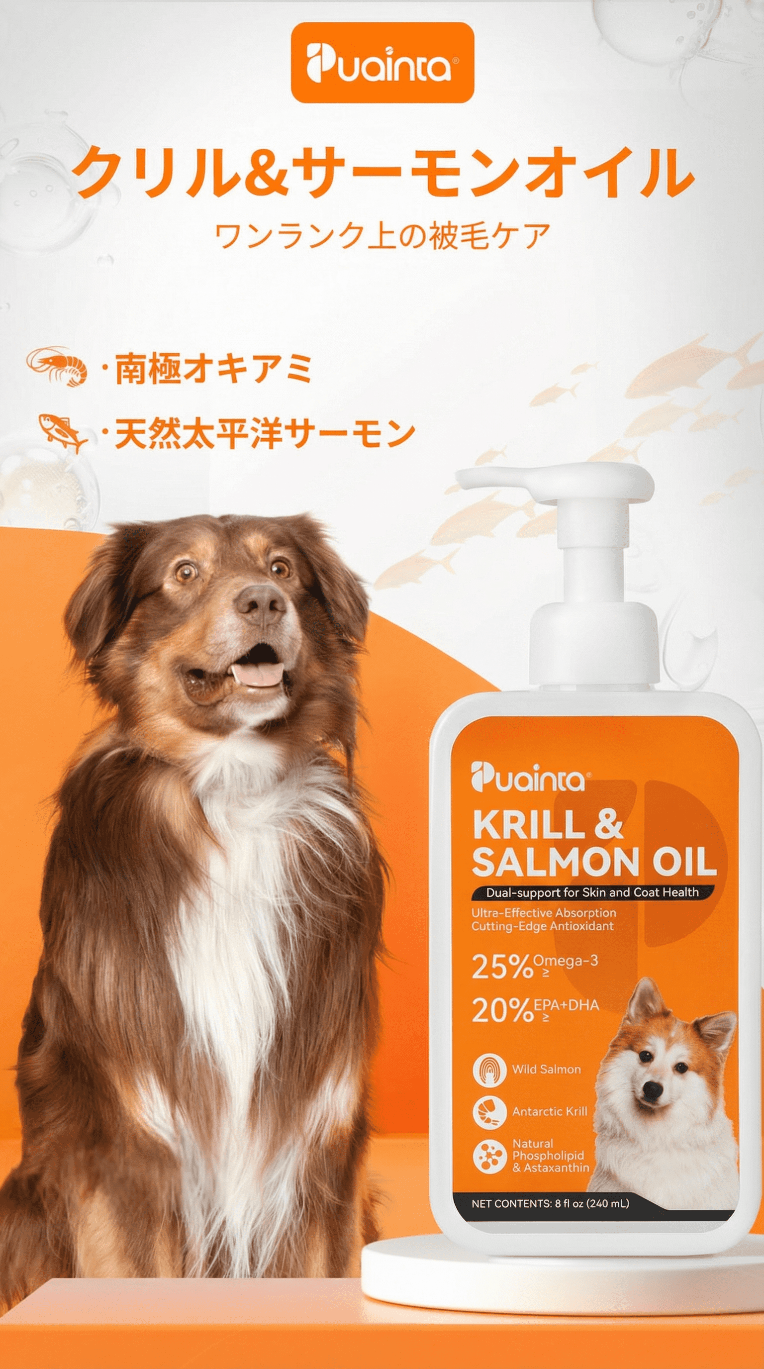プアインタ-クリル&フィッシュオイル オメガ3 25%|DHA・EPA・ビタミンA・E配合 犬猫用