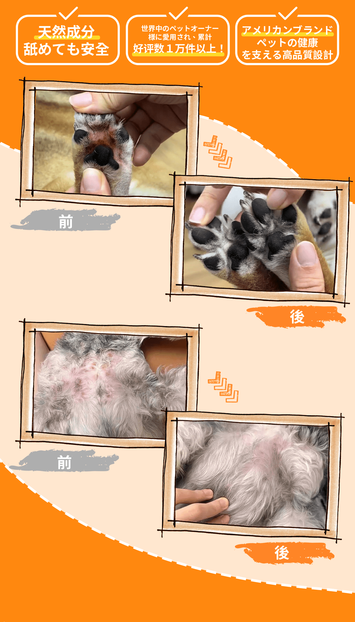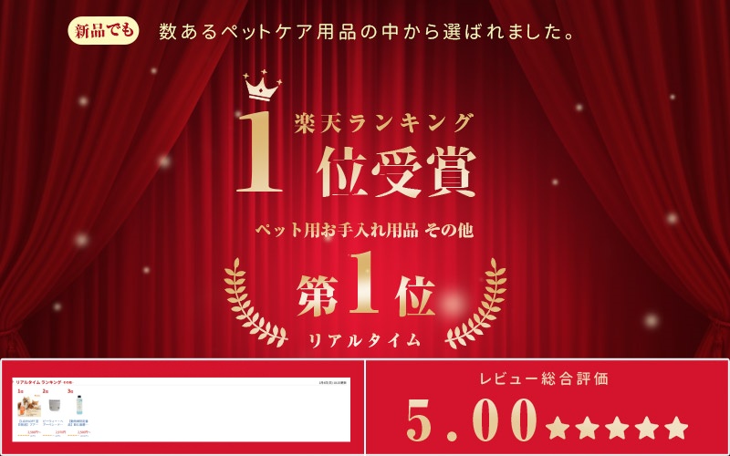 さらに、舐めても安全、ペット用pH値に調整されており、猫・犬どちらにもご使用いただけます。