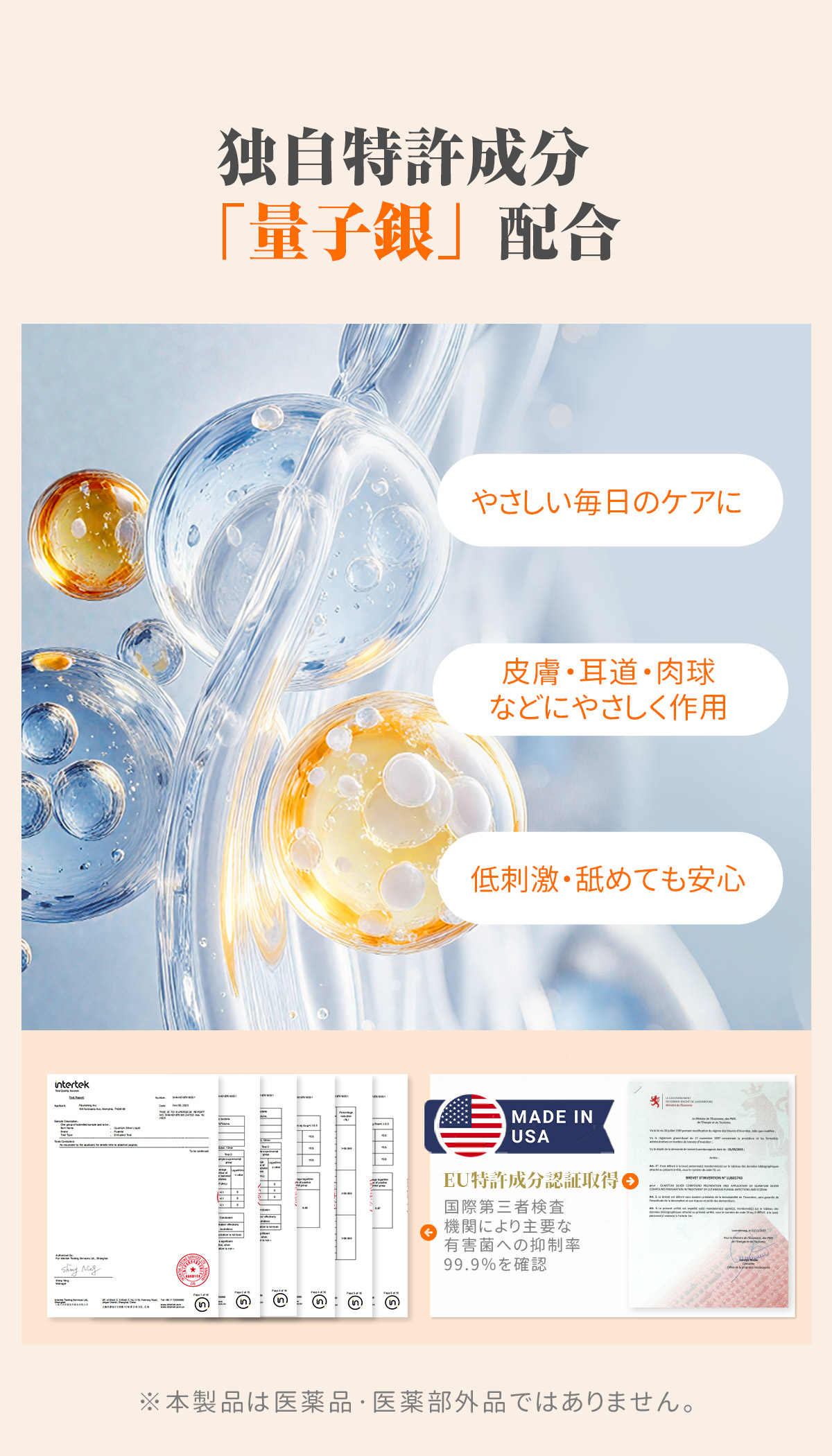 量子銀成分は、創傷治癒、抗菌治療、薬剤送達用途において有益で、かつ安全・無毒、低刺激性であることが確認されています。